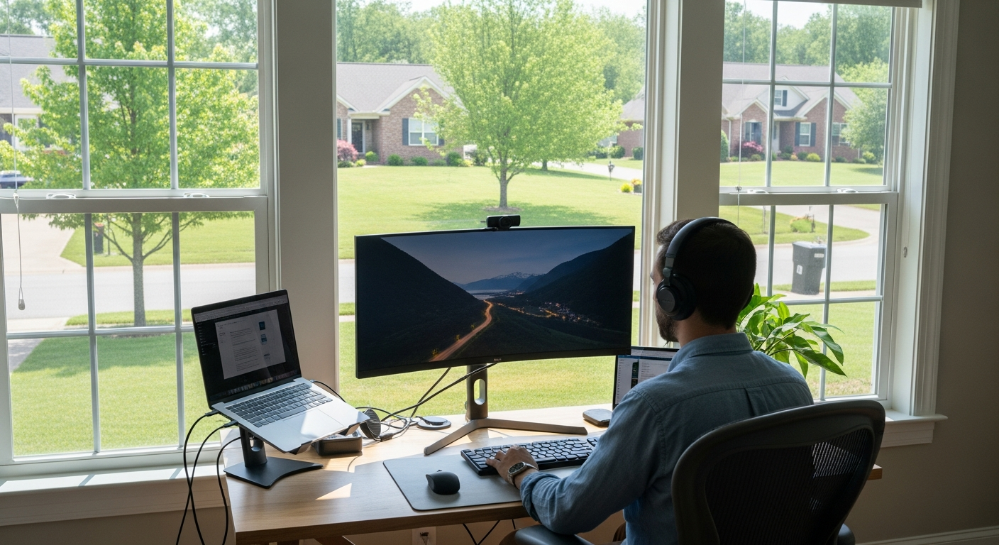 Time-zone coordination. Tennessee is on Central Time. If you're working with East Coast colleagues (most common), the morning meeting cadence works fine — you're up at 8 ET, they're at 9. If you're working with West Coast colleagues, 5pm meetings their time become 7pm yours. Manageable but worth modeling.